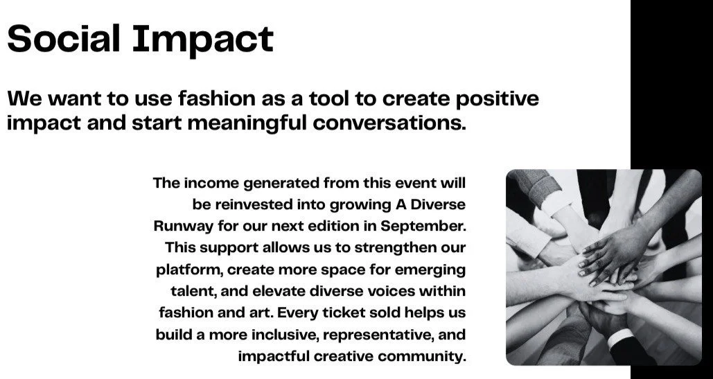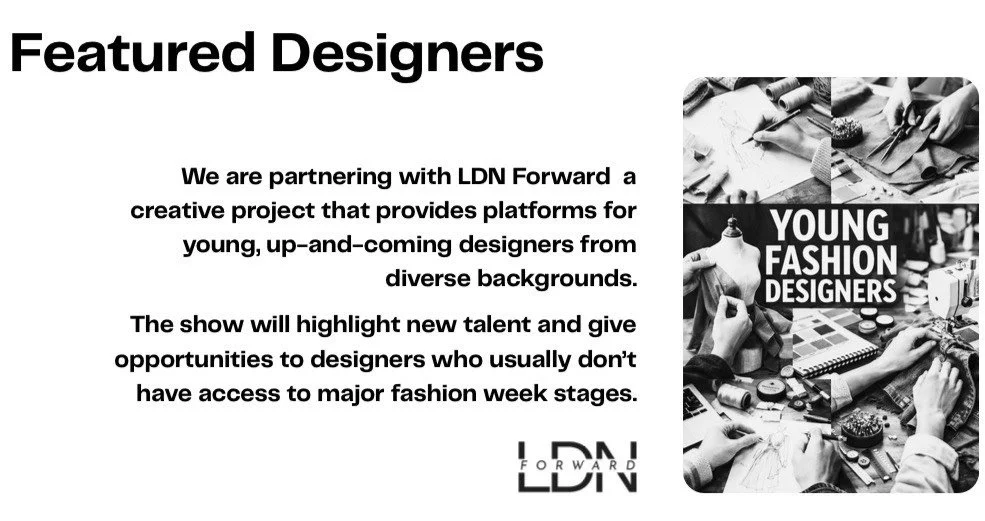 The purpose of A Diverse Runway is to celebrate diversity, create visibility, and bring people together through fashion and art during London Fashion Week. It is a platform for underrepresented voices, emerging talent, and meaningful conversations, showing how powerful it is when people from different walks of life share the same space and the same runway.