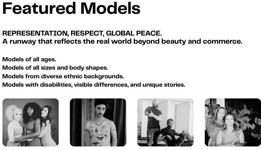 A Diverse Runway is a two-day pop-up fashion and art event taking place during London Fashion Week. The project brings together fashion, art, and community to highlight the beauty of diversity, representation, and unity, while creating visibility around world peace.